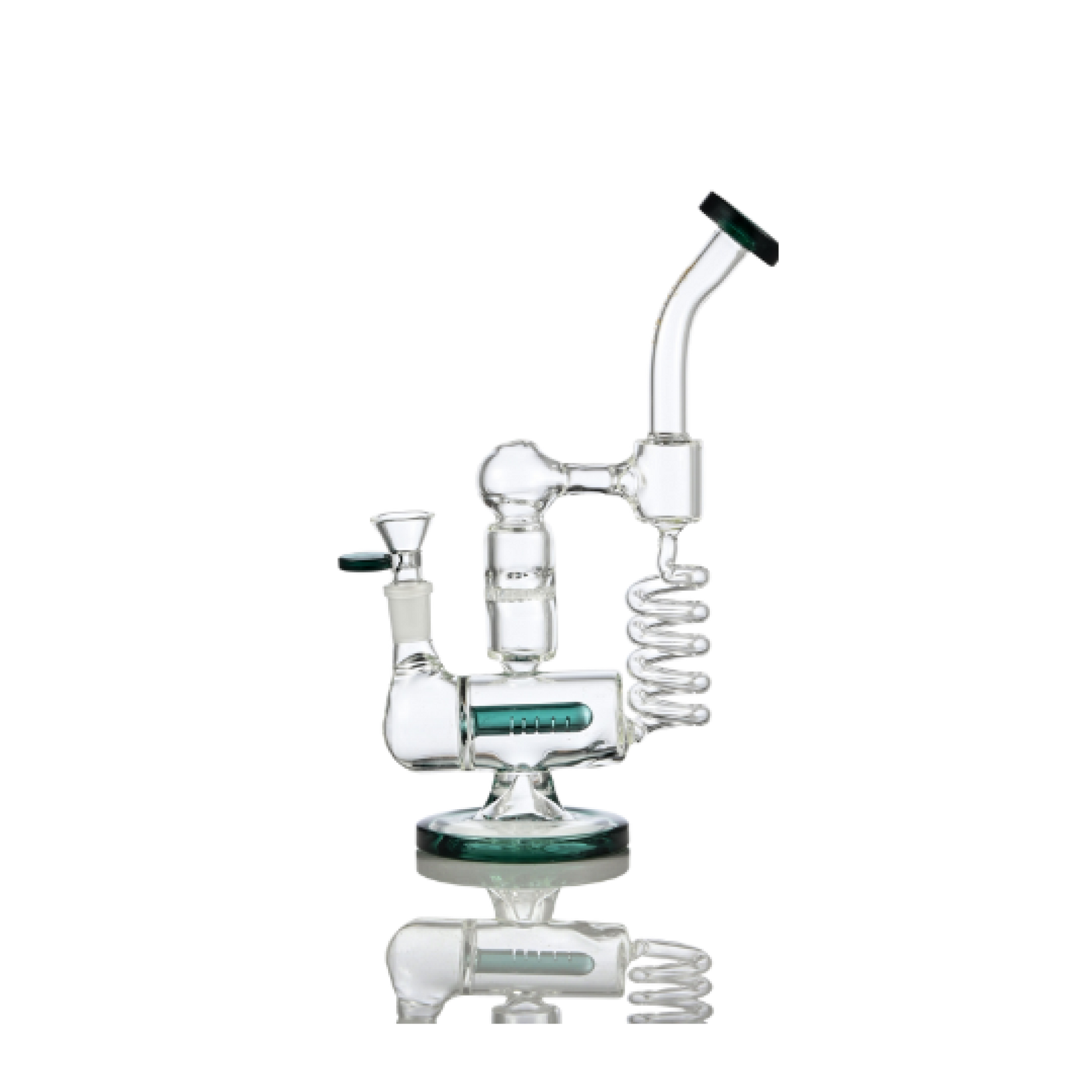 10 Inch spring tubing joint with honeycomb perc and worked inline perc bubbler.