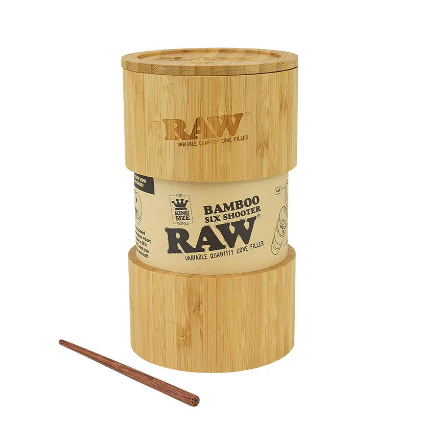 The RAW Six Shooter is brought to another level with this deluxe bamboo version with magnetic bumped design! This variable quantity filler is designed to match your lifestyle. Sometimes you only want to fill one cone, while other times you’re ready to RAWK out and need 6 cones filled with peace. The design was inspired by an old Spanish millstone. Just dial the plate to the quantity you want to fill: 1, 2, or 3! Want to fill 6? Remove the plate.