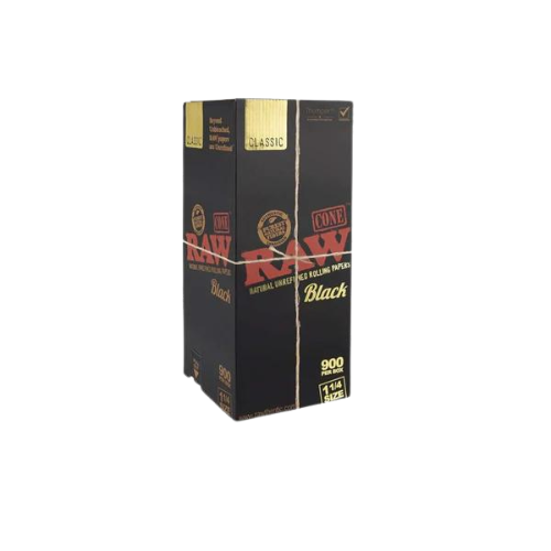 RAW Black Prerolled Cones Bulk - (900CT) 1 1/4 Size