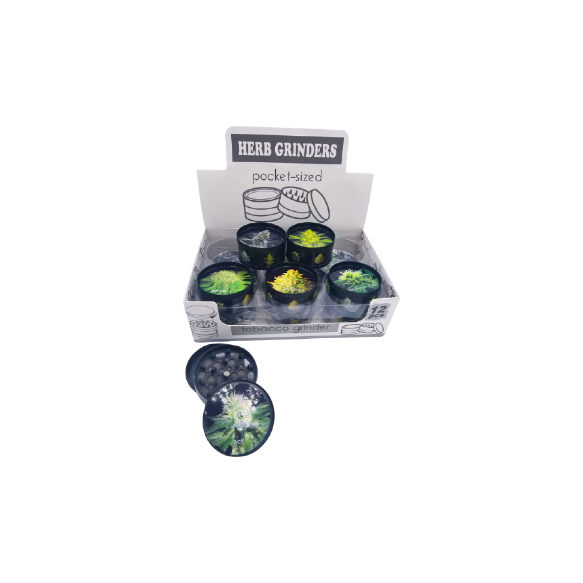 50 MM 3 part with taste of plant, Sativa, Indica and Hybrid. Grinders,