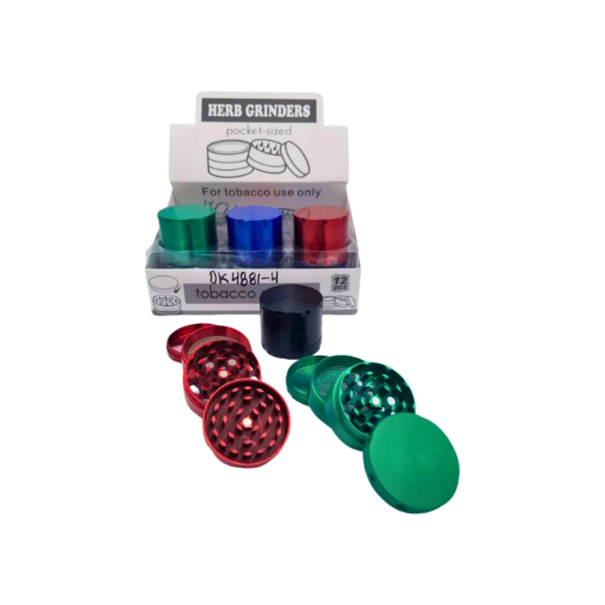 4 part 50 mm diameter plain with etched on corners for easier grip.