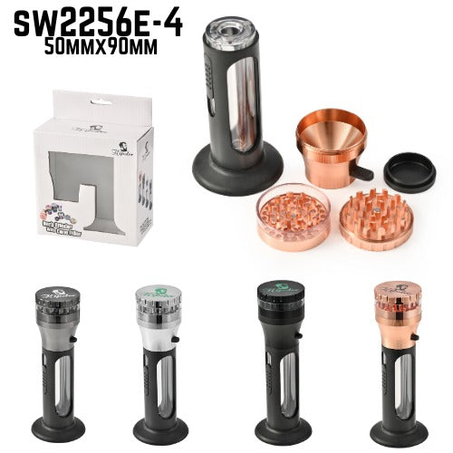 Turbocrush Herb Grinder is designed to make grinding herbs faster and more efficient. Featuring a sleek, ergonomic design, this 50mm x 90mm grinder is equipped with a powerful electric mechanism that effortlessly grinds your herbs to perfection. The copper grinding teeth and funnel make it easy to collect and transfer your herbs directly into a cone.Available in four color options—silver, black, green, and gold. 48 mix colors per case